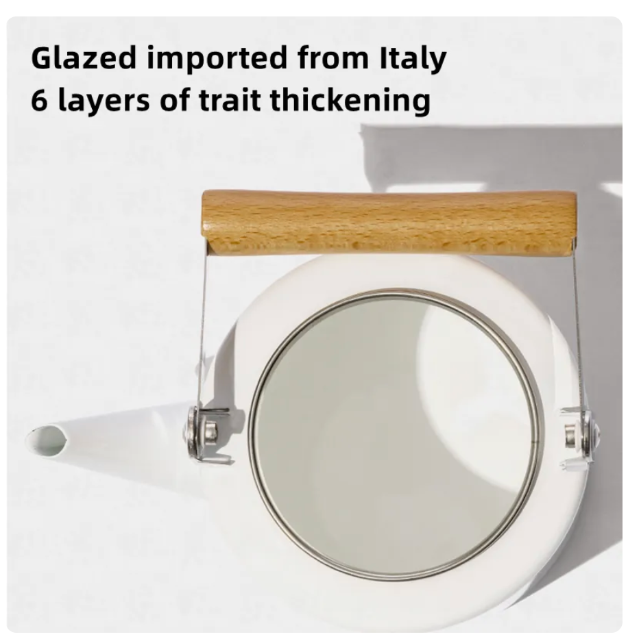 الغطاء/الإبريق: لوح حديد 0.8 مم، 6 طبقات من التزجيج، حوالي 0.4 مم بعد الانتهاء من التزجيج