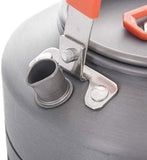تم تصنيع الغلاية من الألومنيوم الصلب المؤكسد والفولاذ المقاوم للصدأ مع مقبض قابل للطي لسهولة التخزين في حقيبتك أو حقيبتك أو رف التروس.