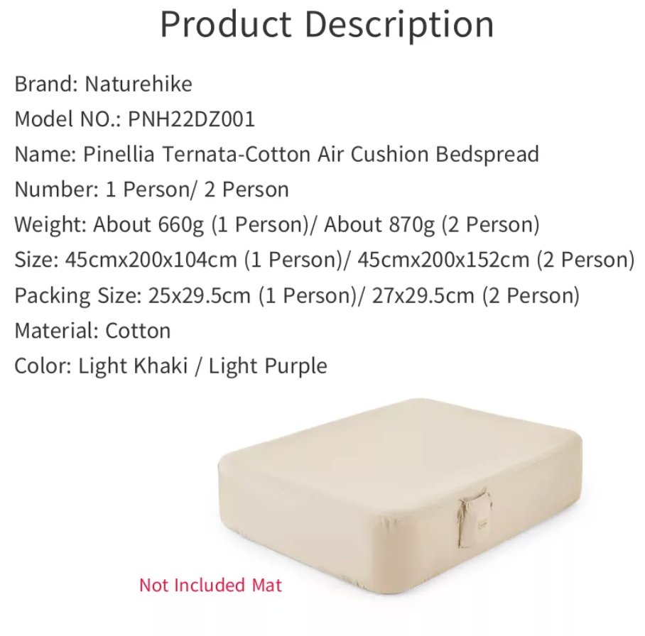 حجم التعبئة: 25 × 29.5 سم (شخص واحد)/ 27 × 29.5 سم (2 شخص)