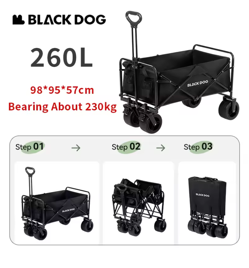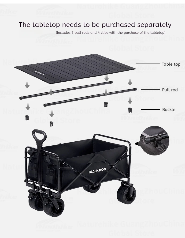 Material: 600D Oxford Cloth/Carbon Steel Tabletop(Purchase Separately)/Carbon Steel Frame/Front Wheel Double Bearing/Wheel Width 9.5cm PVC Wheel