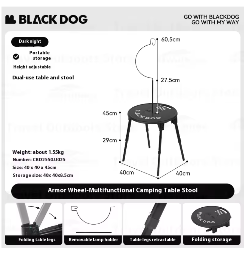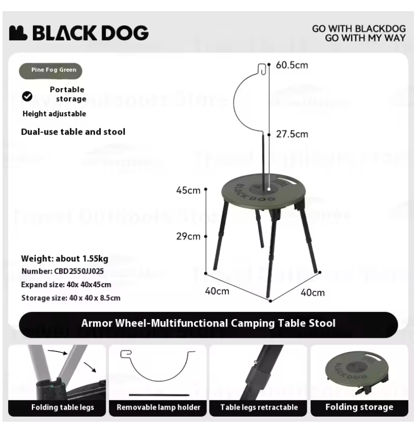 Blackdog - Armor Wheel-Camping Table And Stool Set
