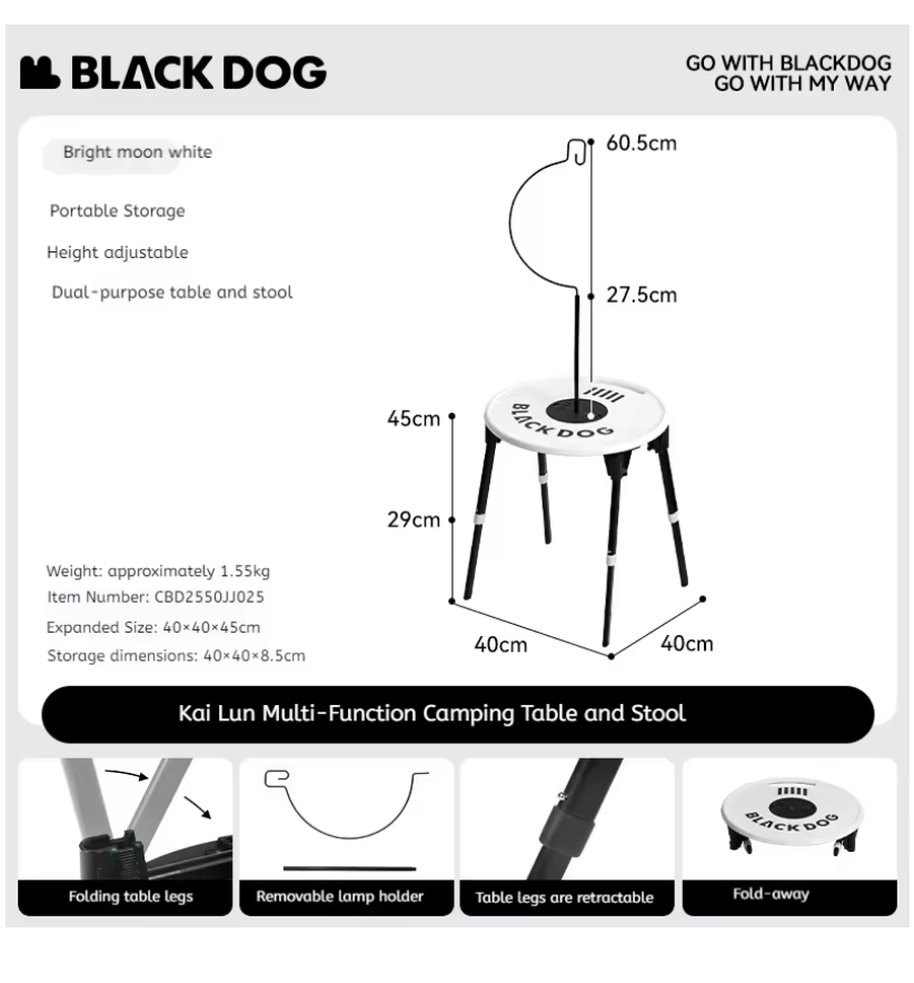 Storage Size: 40*40*8.5cm (Round Table), 25*25*7cm (Stool)