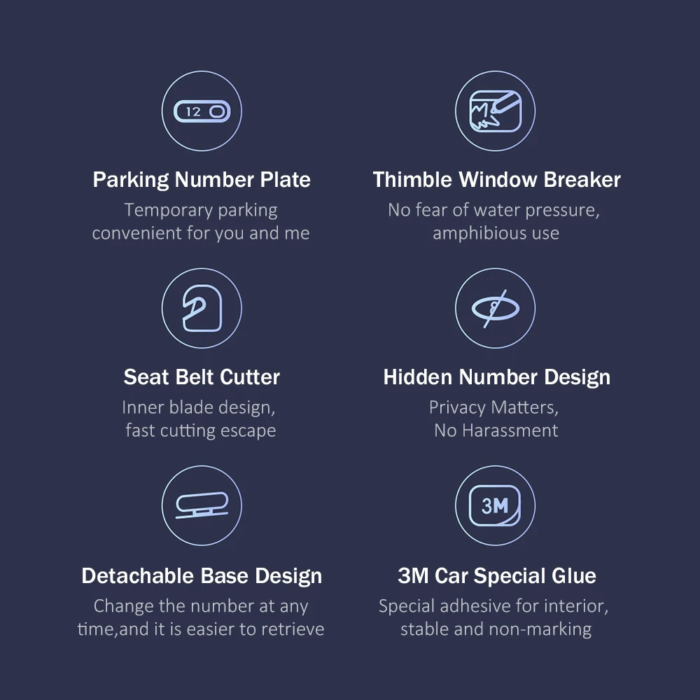 ①Thrive pin type window breaker, no fear of water pressure, amphibious use
