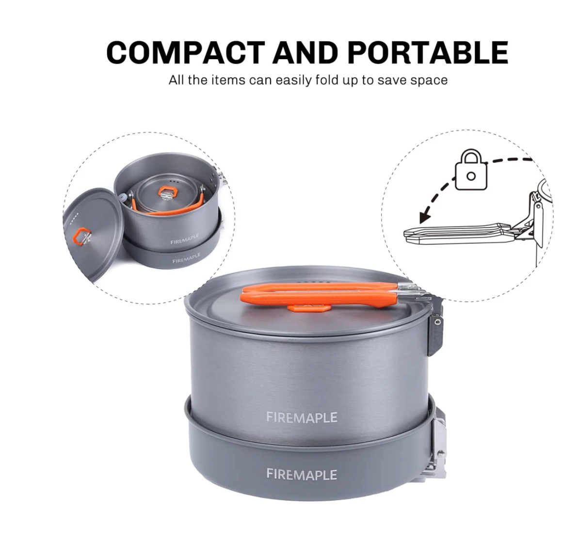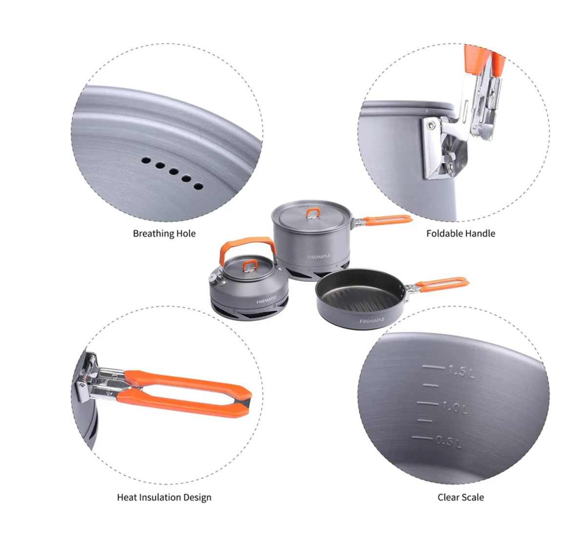 High efficiency cooking pot set for family camping (tent camping), super durable and compact outdoor tableware.