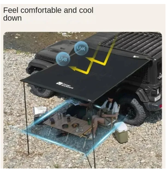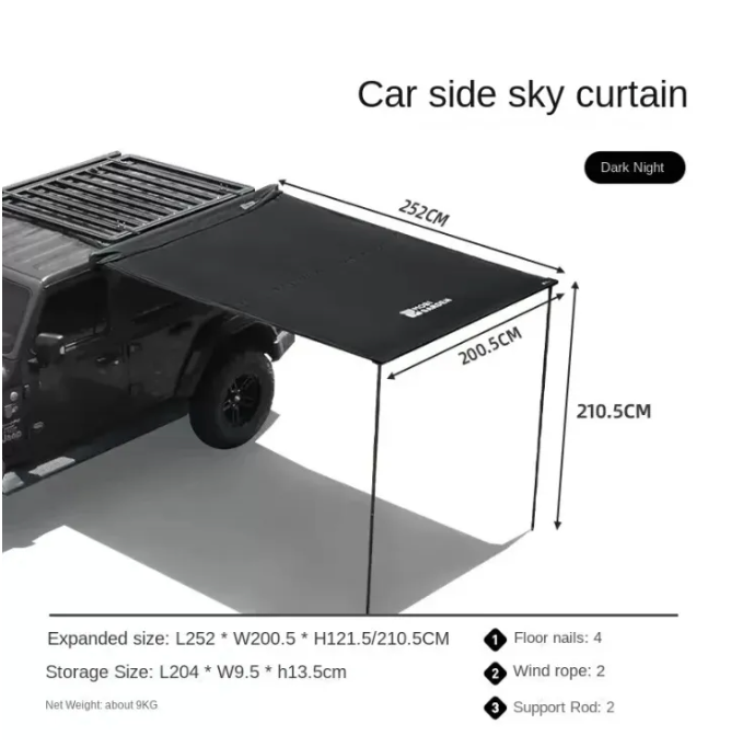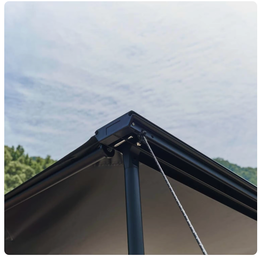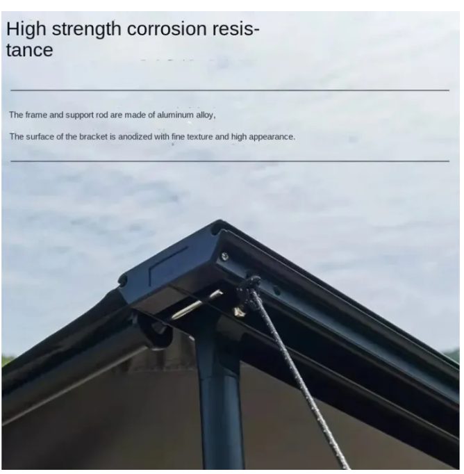 • 150D ripstop dense Oxford thick fabric awning for wear and perfect sun and rain protection. Waterproof Bole 3000mm.