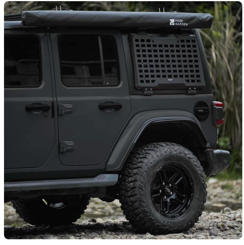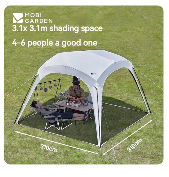 Marquise Mobi Garden car side TARP for protection from rain and sun during outdoor activities.